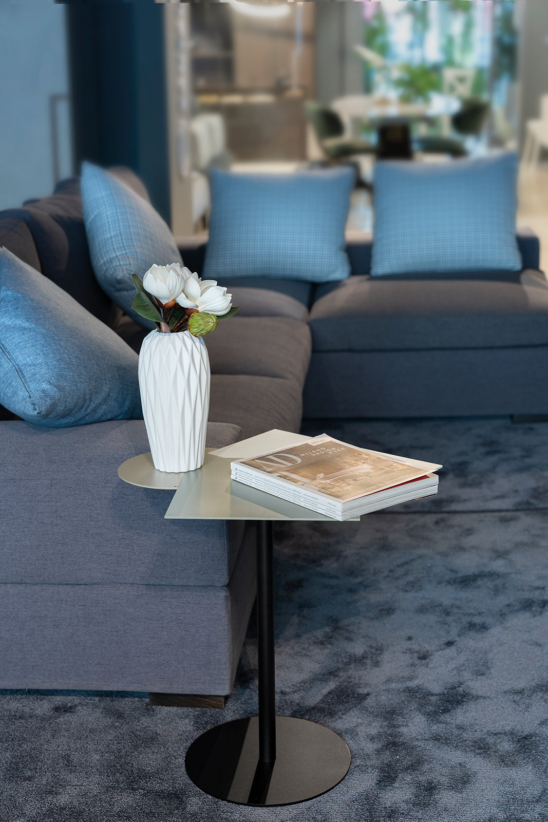 The Kandy table stands out for its versatility and distinctive design. Its bold, geometric lines make it suitable for both domestic and professional settings, giving it a modern touch without being excessive. It can be used as a table top or as a coffee table.