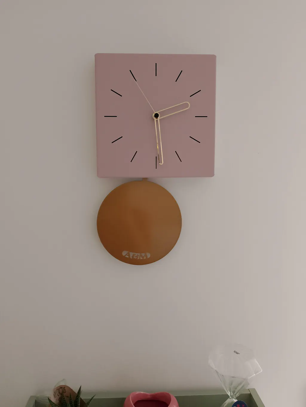 At the bottom of the clock, a large, rounded pendulum adds a dynamic and decorative touch, catching the eye and giving a sense of movement and lightness. Delicate and welcoming pastel colours further enrich the clock, adding a touch of colour without ever being intrusive.