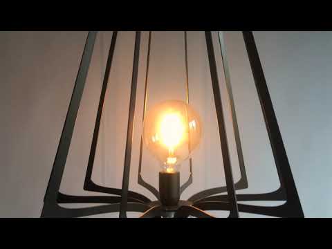 - Caratteristiche: Una lampada a forma di reticolato, simile a una classica piantana con paralume. Questo tipo di lampada richiama il concetto di "modello in fil di ferro" utilizzato nella rappresentazione grafica di oggetti tridimensionali. Con questo metodo, vengono disegnati solo i contorni dell'oggetto, lasciando trasparente l'interno (creando l'effetto di essere costruita con filo di ferro)